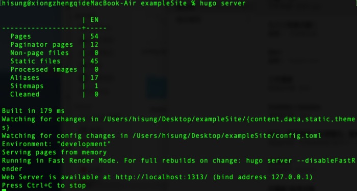 之後在Google / Safari 網址中輸入 http://localhost:1313/ 就會出現了~